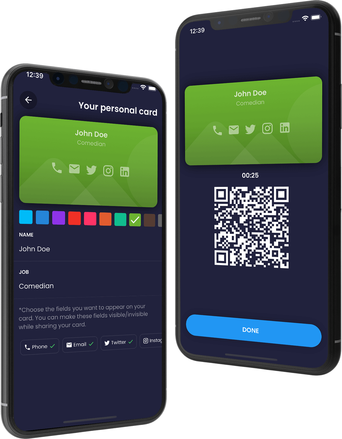 Craft diverse digital cards for business or friend connections,